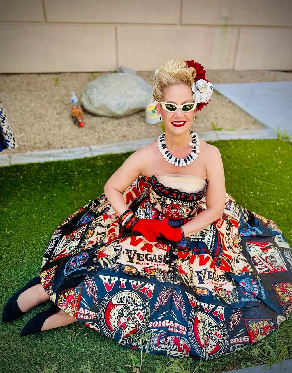 A custom Viva Las Vegas Swag Bag dress for Millie Rose Mitchell