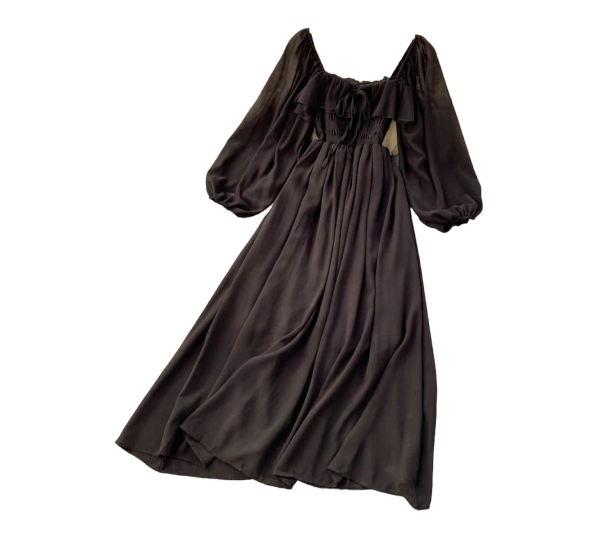 This sheer pullover dress features a lightweight polyester construction and a square neckline, along with puff sleeves and a lined interior for added comfort. The empire waistline and full, mid-calf length skirt add a touch of elegance to the design.